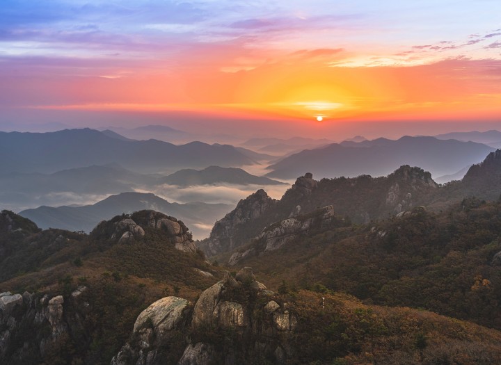 문장대는 높이 1,054m로 큰 암석이 하늘 높이 치솟아 흰 구름과 맞닿은 듯한 절경을 이루고 있어 운장대라고도 한다. 정상에서 내려다보는 자연 경관이 아주 아름다워 사계절 내내 많은 등산객들의 사랑을 받는 대표적인 등반코스이다.
