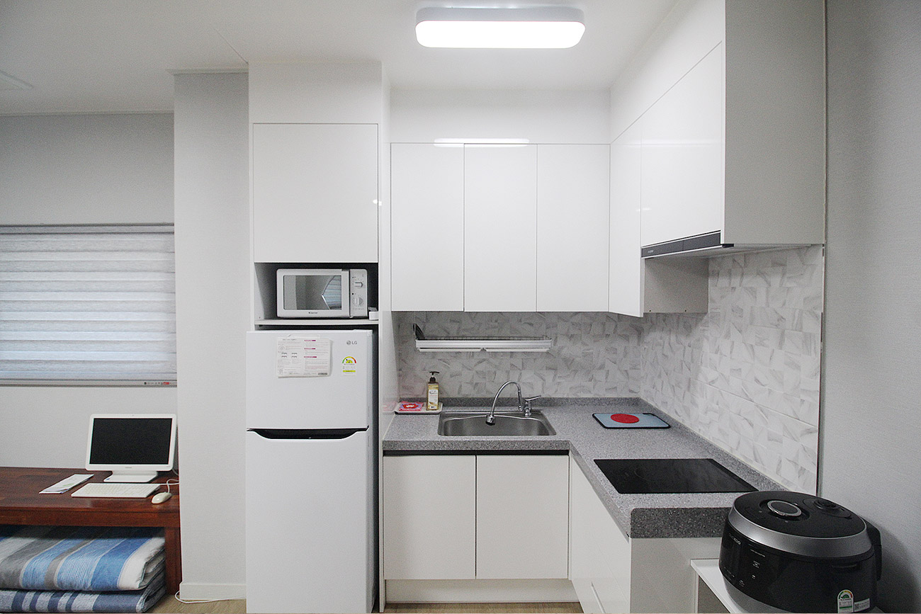 TV, 침대, 식탁, 에어컨, PC, 커피포트, 전기밥솥, 전자렌지, 조리도구일체, 식기일체, 수건, 용품일체 등